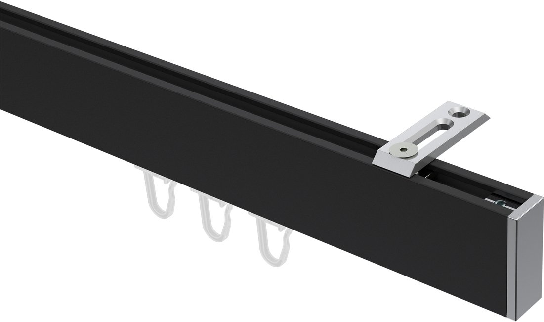 Gardinenstangen mit eckigem Innenlauf Deckenmontage aus Aluminium / Metall in 14x35 mm, 1-läufig, Modell SMARTLINE (Universal) - Paxo Schwarz / Chrom