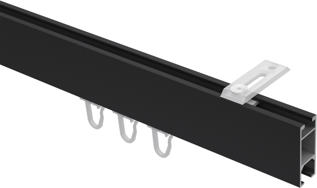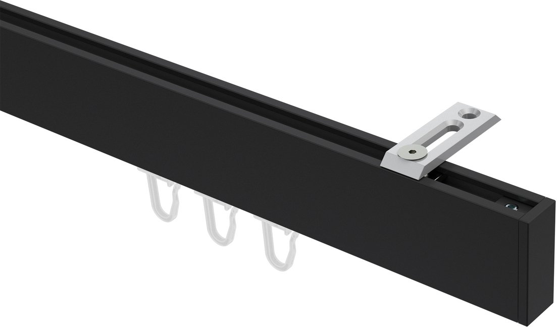Gardinenstangen mit eckigem Innenlauf Deckenmontage aus Aluminium / Metall in 14x35 mm, 1-läufig, Modell SMARTLINE (Universal) - Paxo Schwarz
