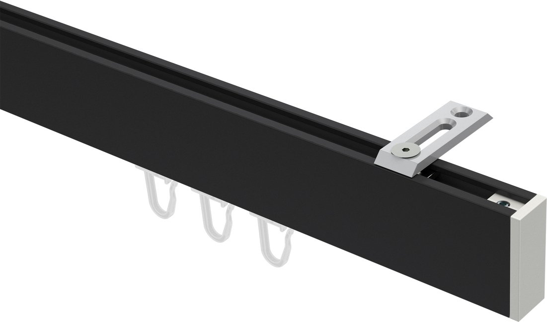 Gardinenstangen mit eckigem Innenlauf Deckenmontage aus Aluminium / Metall in 14x35 mm, 1-läufig, Modell SMARTLINE (Universal) - Paxo Schwarz / Weiß