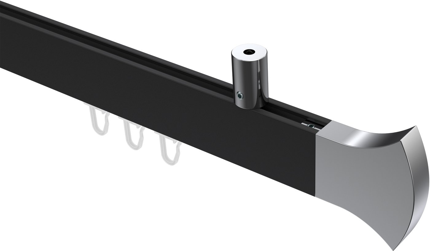 Gardinenstangen mit eckigem Innenlauf Deckenmontage aus Aluminium / Metall in 14x35 mm, 1-läufig, Modell SONIUS - Conex Schwarz / Chrom