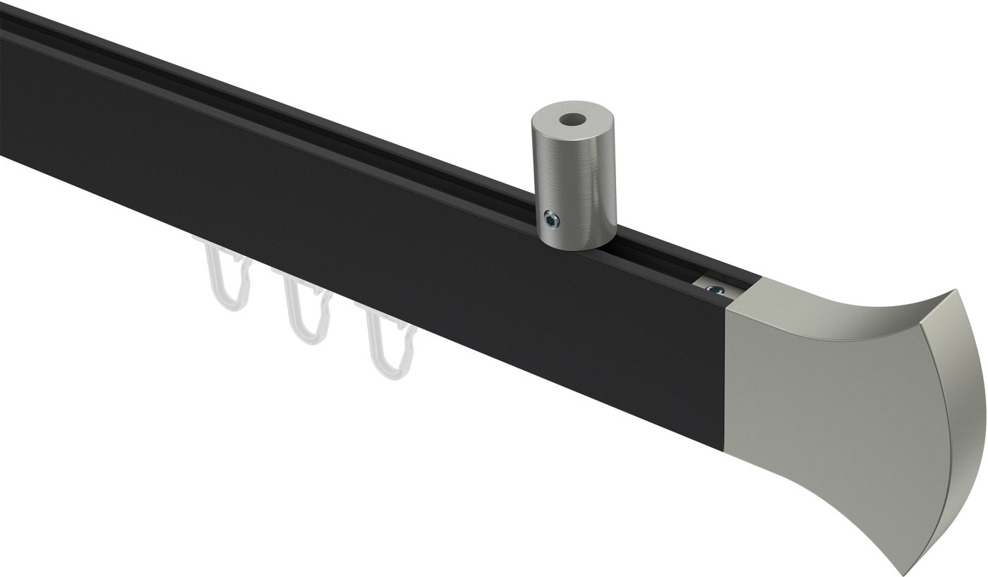 Gardinenstangen mit eckigem Innenlauf Deckenmontage aus Aluminium / Metall in 14x35 mm, 1-läufig, Modell SONIUS - Conex Schwarz / Edelstahl-Optik