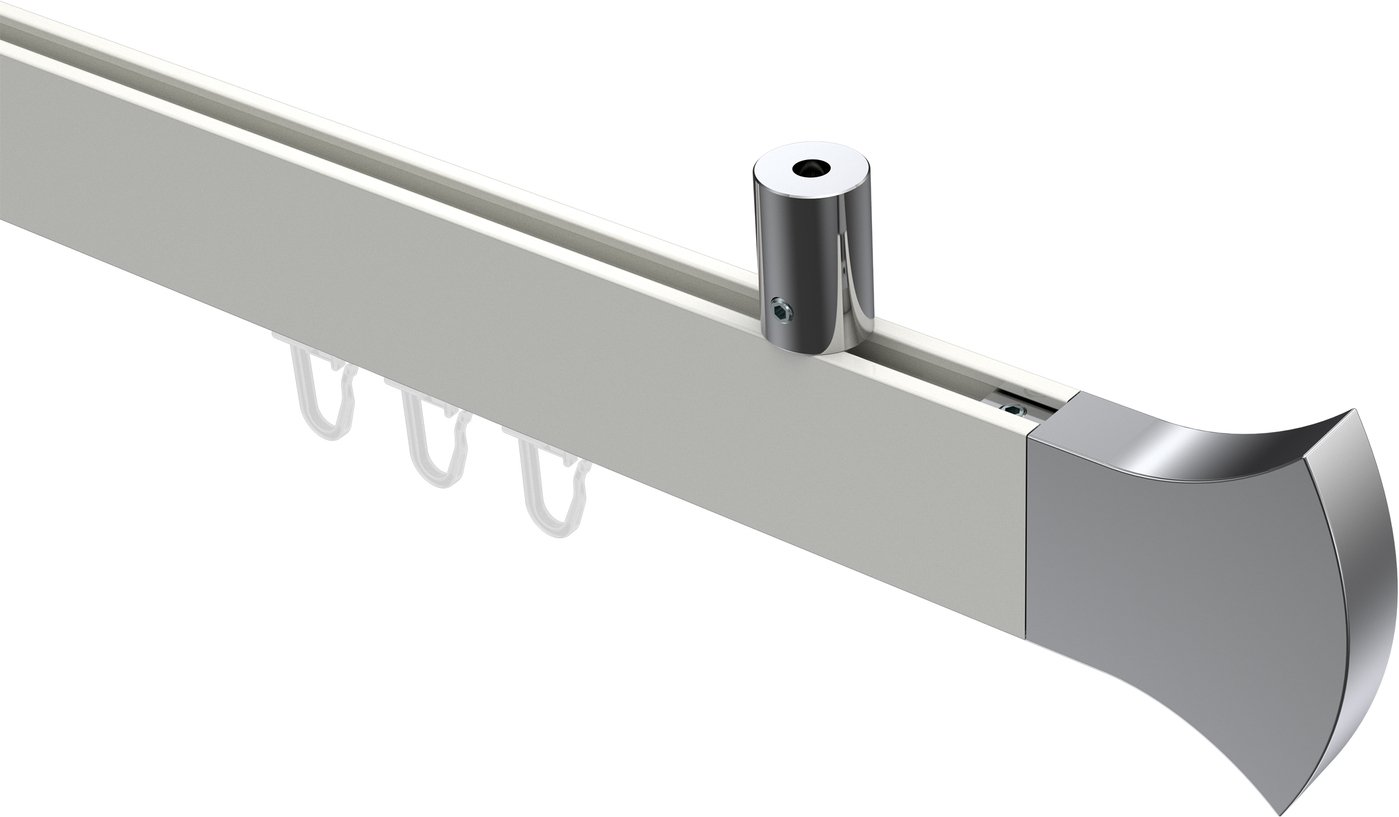 Gardinenstangen mit eckigem Innenlauf Deckenmontage aus Aluminium / Metall in 14x35 mm, 1-läufig, Modell SONIUS - Conex Weiß / Chrom