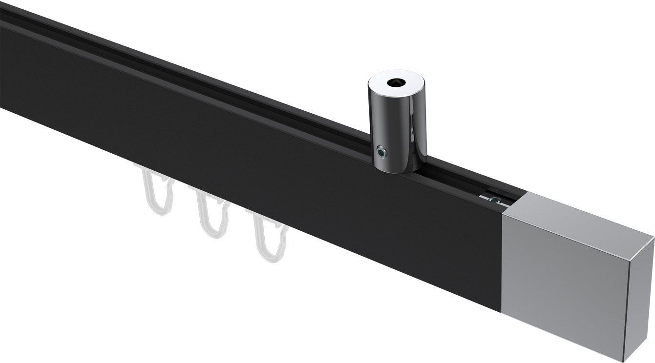 Gardinenstangen mit eckigem Innenlauf Deckenmontage aus Aluminium / Metall in 14x35 mm, 1-läufig, Modell SONIUS - Lox Schwarz / Chrom