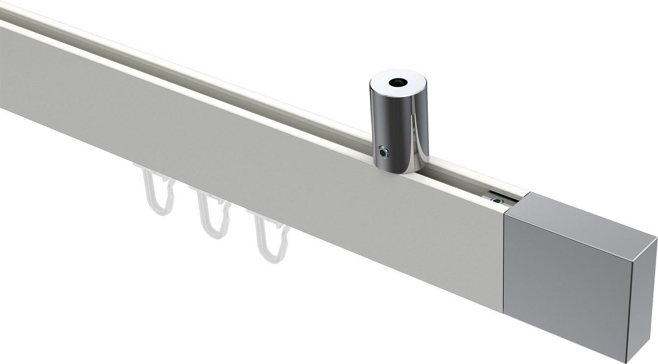 Gardinenstangen mit eckigem Innenlauf Deckenmontage aus Aluminium / Metall in 14x35 mm, 1-läufig, Modell SONIUS - Lox Weiß / Chrom