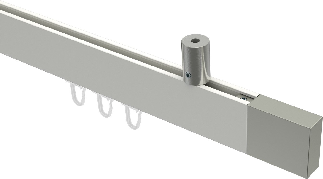 Gardinenstangen mit eckigem Innenlauf Deckenmontage aus Aluminium / Metall in 14x35 mm, 1-läufig, Modell SONIUS - Lox Weiß / Edelstahl-Optik