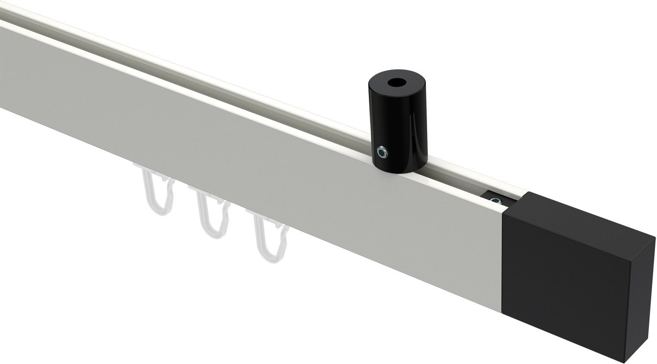 Gardinenstangen mit eckigem Innenlauf Deckenmontage aus Aluminium / Metall in 14x35 mm, 1-läufig, Modell SONIUS - Lox Weiß / Schwarz