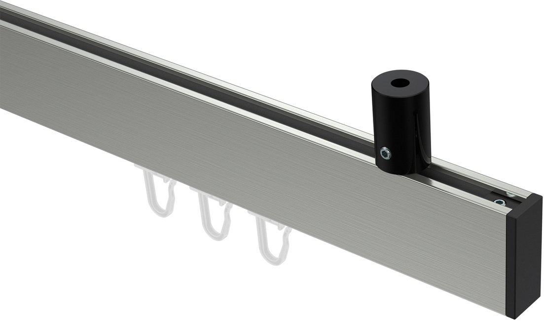 Gardinenstangen mit eckigem Innenlauf Deckenmontage aus Aluminium / Metall in 14x35 mm, 1-läufig, Modell SONIUS - Paxo Edelstahl-Optik / Schwarz