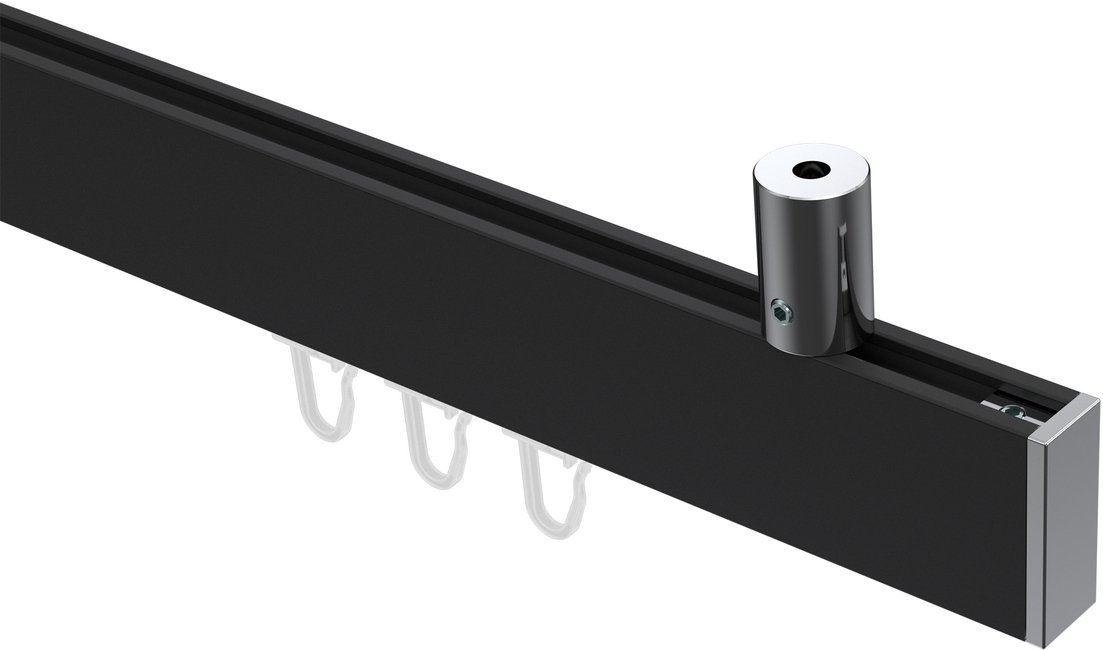 Gardinenstangen mit eckigem Innenlauf Deckenmontage aus Aluminium / Metall in 14x35 mm, 1-läufig, Modell SONIUS - Paxo Schwarz / Chrom