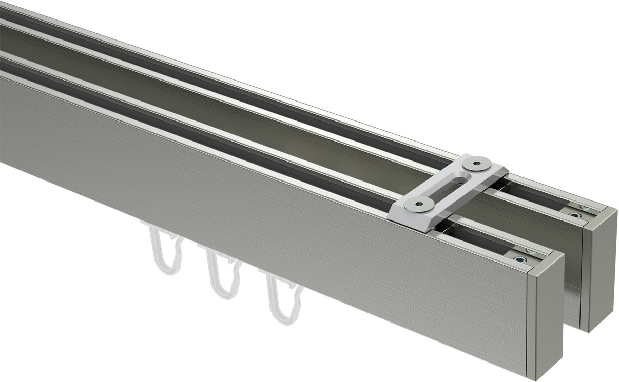 Gardinenstangen mit eckigem Innenlauf Deckenmontage aus Edelstahl-Optik in 14x35 mm, 2-läufig, Modell SMARTLINE (Universal) - Paxo