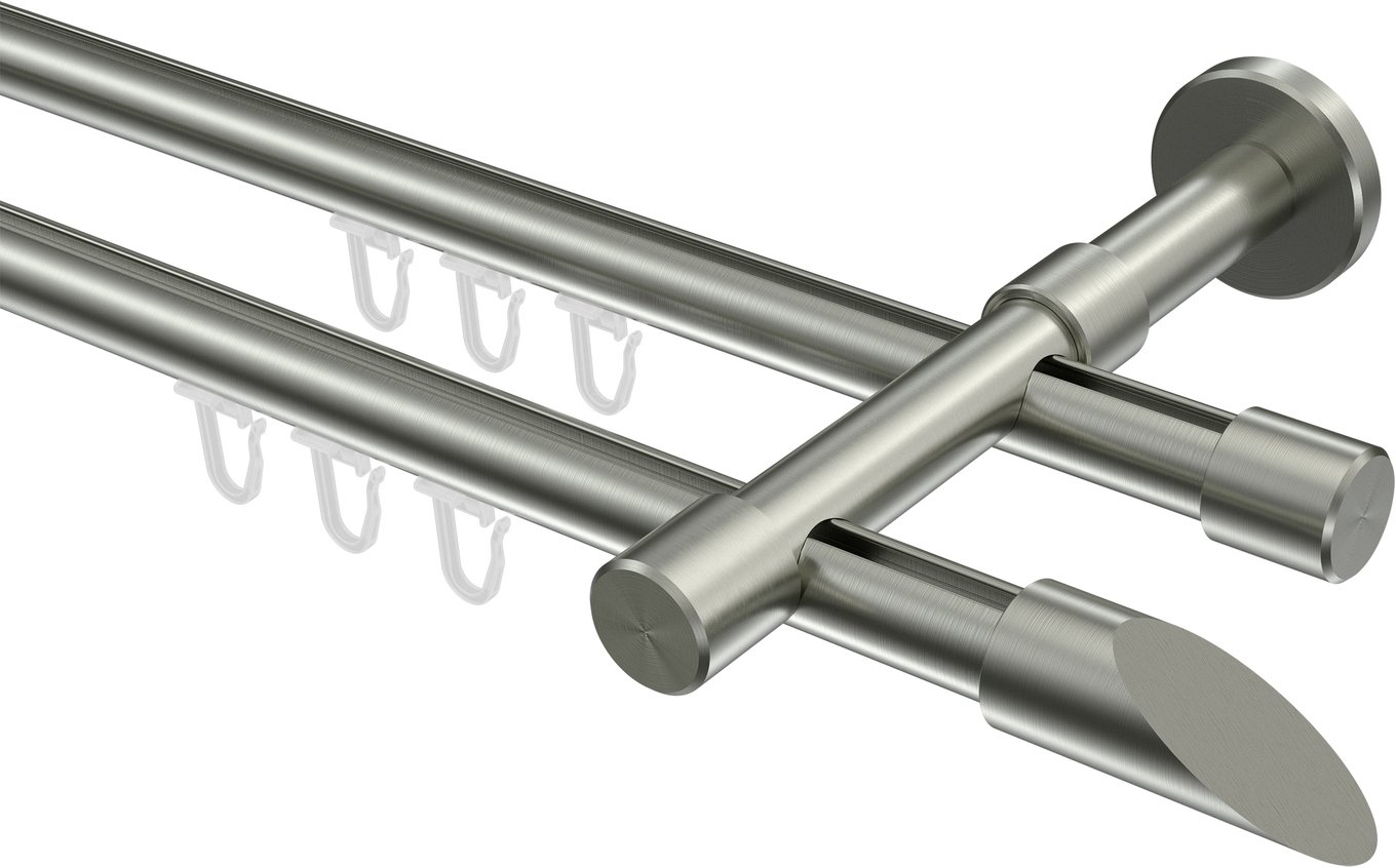 Gardinenstangen mit Innenlauf aus Edelstahl-Optik in 16 mm Ø, 2-läufig, Modell SINUX - Santoni