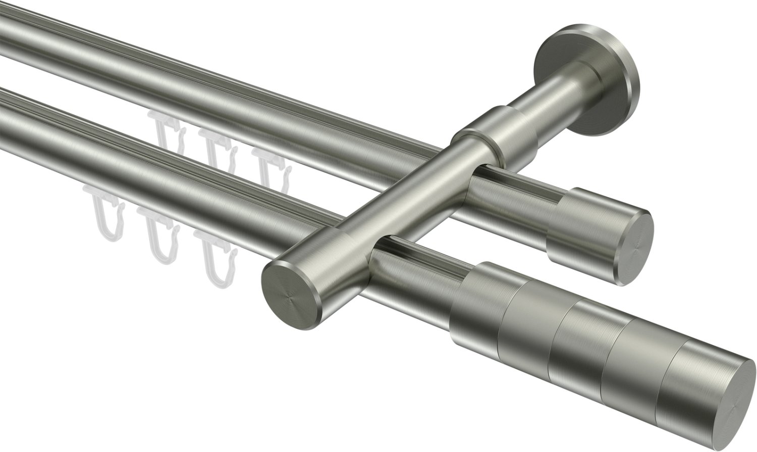 Gardinenstangen mit Innenlauf aus Edelstahl-Optik in 20 mm Ø, 2-läufig, Modell PRESTIGE - Mavell