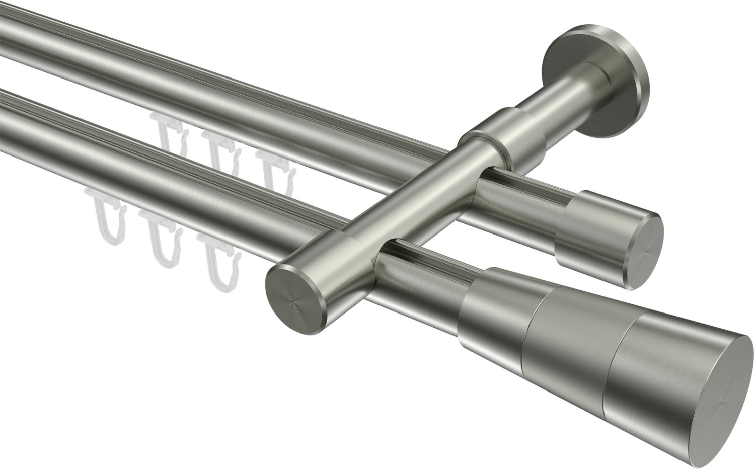 Gardinenstangen mit Innenlauf aus Edelstahl-Optik in 20 mm Ø, 2-läufig, Modell PRESTIGE - Tanara