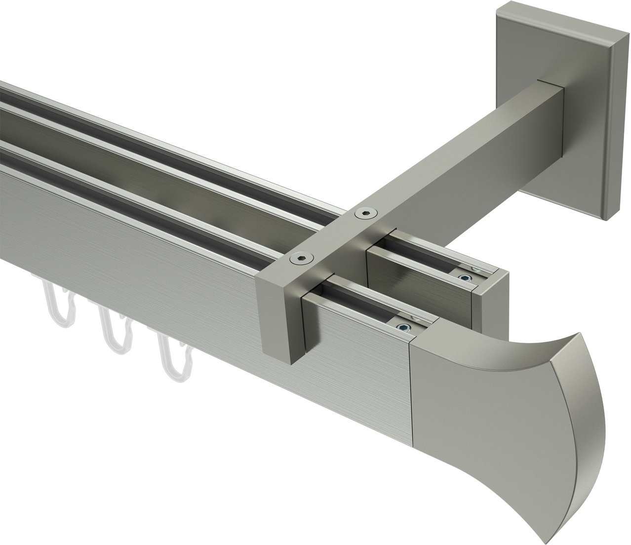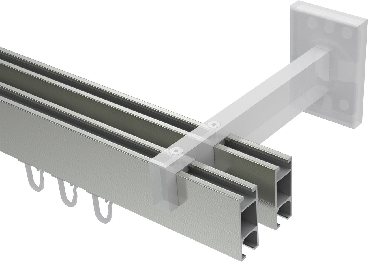 Gardinenstangen mit eckigem Innenlauf aus Edelstahl-Optik in 14x35 mm, 2-läufig, Modell SMARTLINE - Conex (Wandabstand lang)