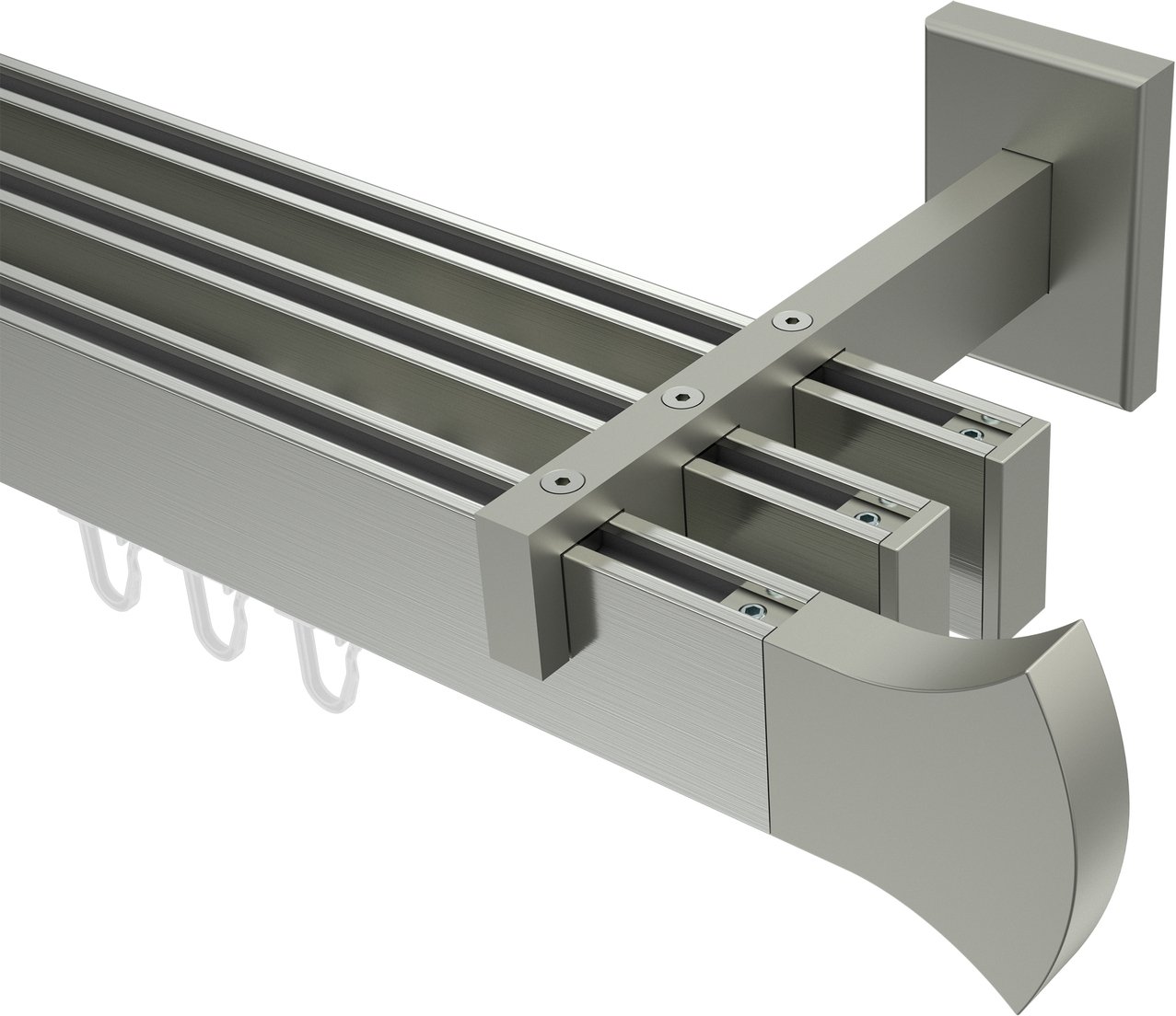 Gardinenstangen mit eckigem Innenlauf aus Edelstahl-Optik in 14x35 mm, 3-läufig, Modell SMARTLINE - Conex (Wandabstand lang)