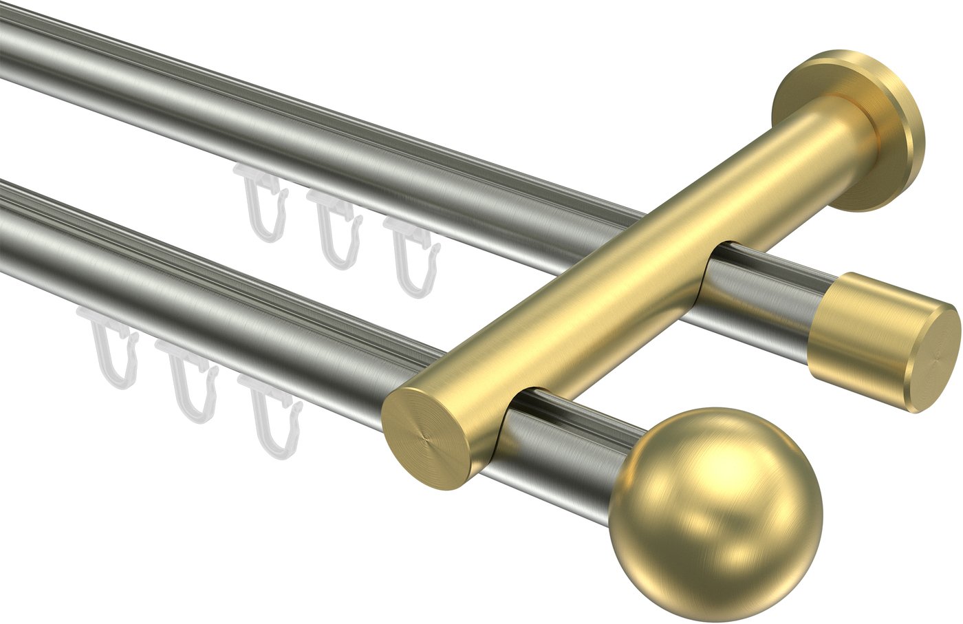 Gardinenstangen mit Innenlauf aus Edelstahl-Optik / Messing-Optik in 20 mm Ø, 2-läufig, Modell PLATON - Luino