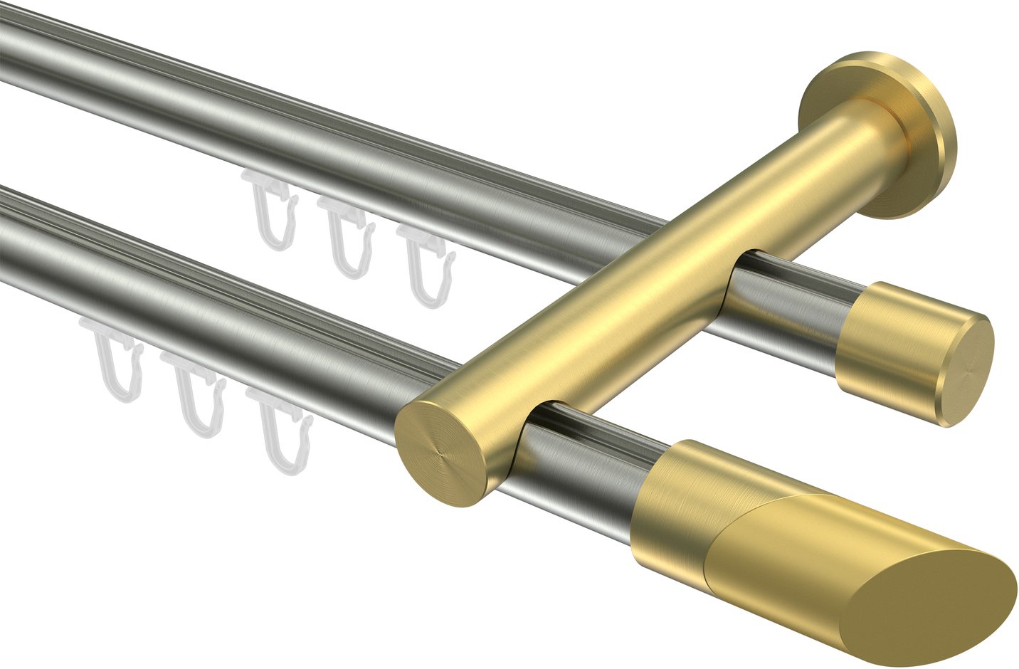 Gardinenstangen mit Innenlauf aus Edelstahl-Optik / Messing-Optik in 20 mm Ø, 2-läufig, Modell PLATON - Verano