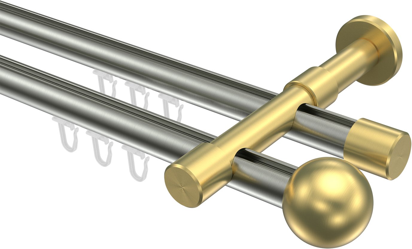 Gardinenstangen mit Innenlauf aus Edelstahl-Optik / Messing-Optik in 20 mm Ø, 2-läufig, Modell PRESTIGE - Luino