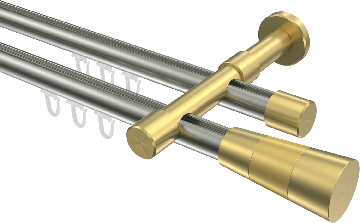 Gardinenstangen mit Innenlauf aus Edelstahl-Optik / Messing-Optik in 20 mm Ø, 2-läufig, Modell PRESTIGE - Tanara