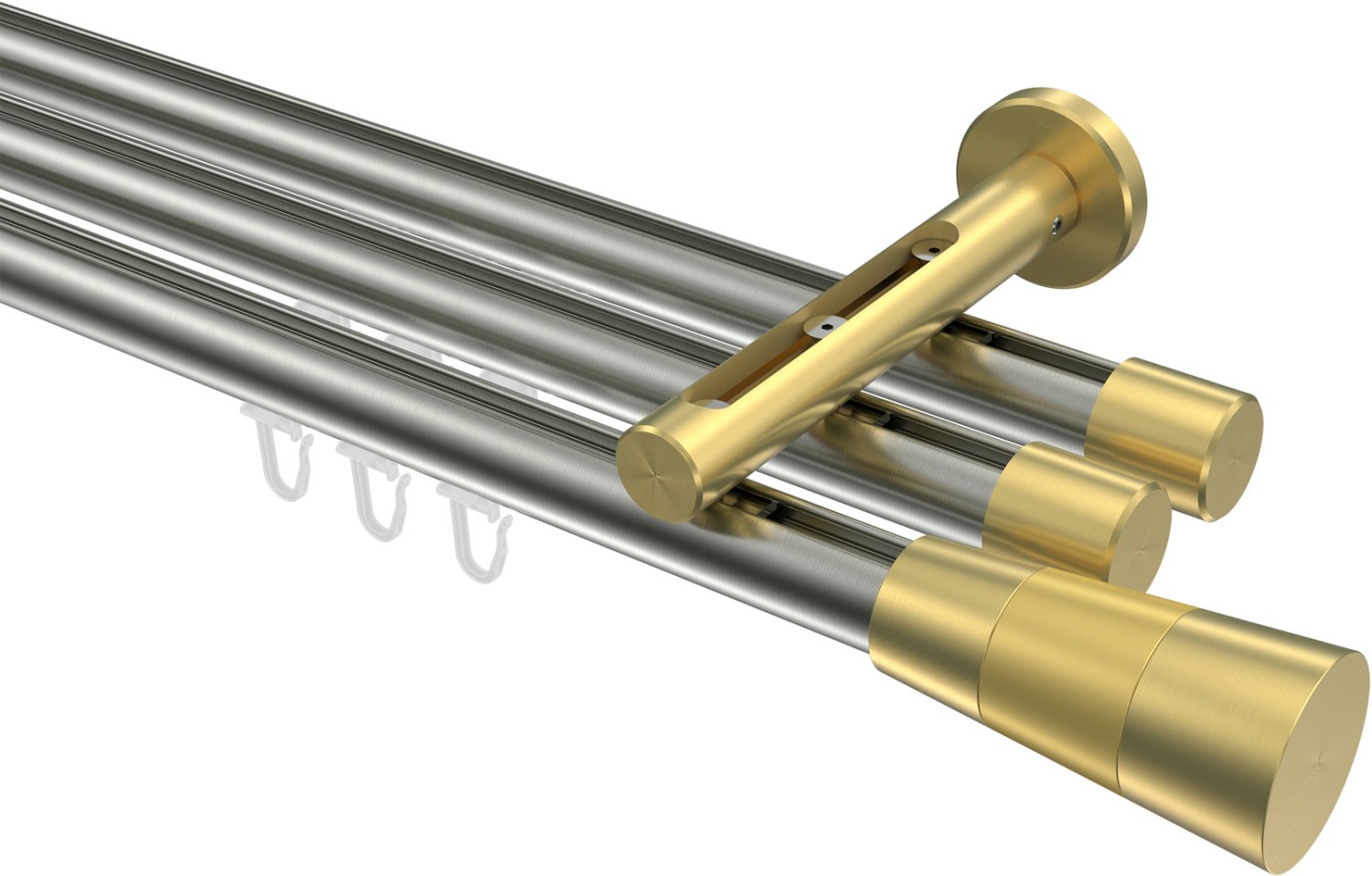 Gardinenstangen mit Innenlauf aus Edelstahl-Optik / Messing-Optik in 20 mm Ø, 3-läufig, Modell SITENO - Tanara