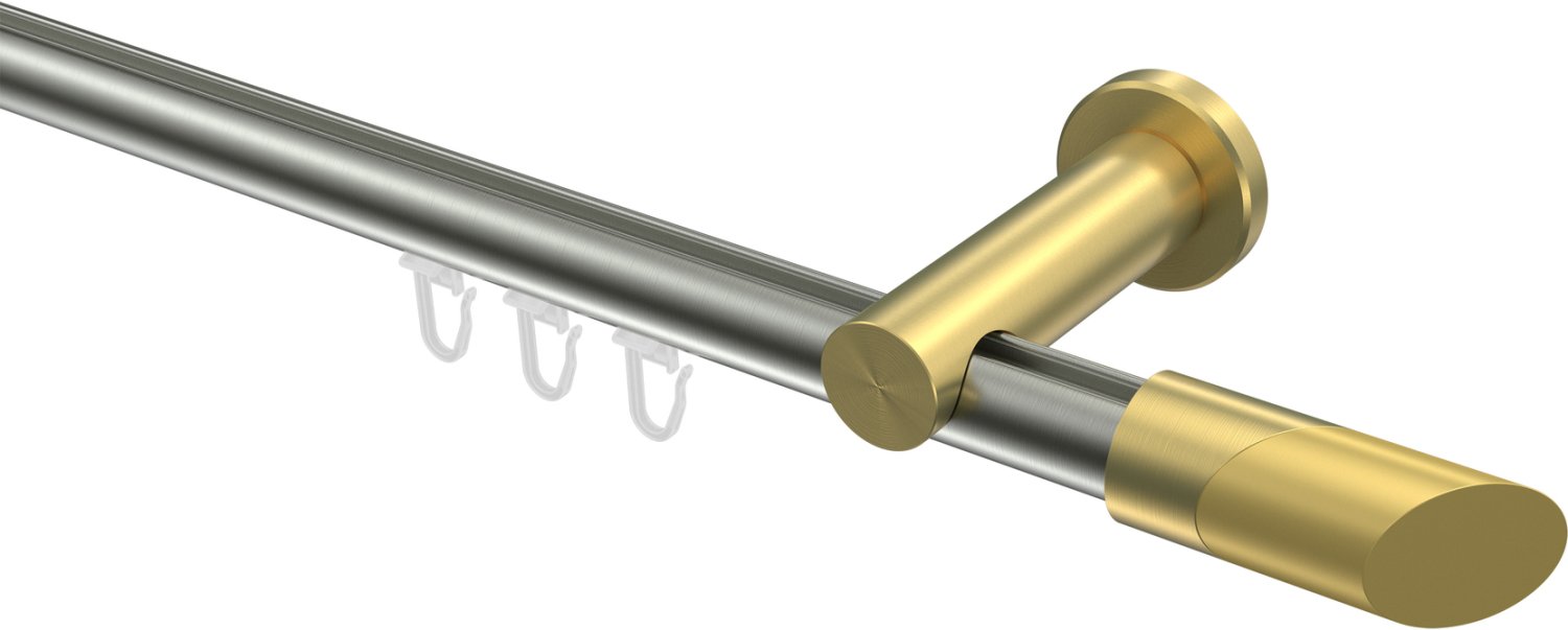 Gardinenstangen mit Innenlauf aus Edelstahl-Optik / Messing-Optik in 20 mm Ø, 1-läufig, Modell PLATON - Verano