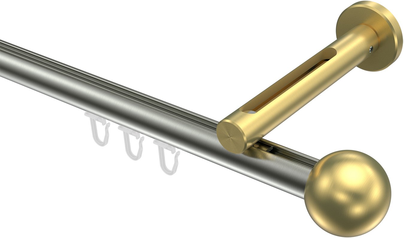 Gardinenstangen mit Innenlauf aus Edelstahl-Optik / Messing-Optik in 20 mm Ø, 1-läufig, Modell SITENO - Luino