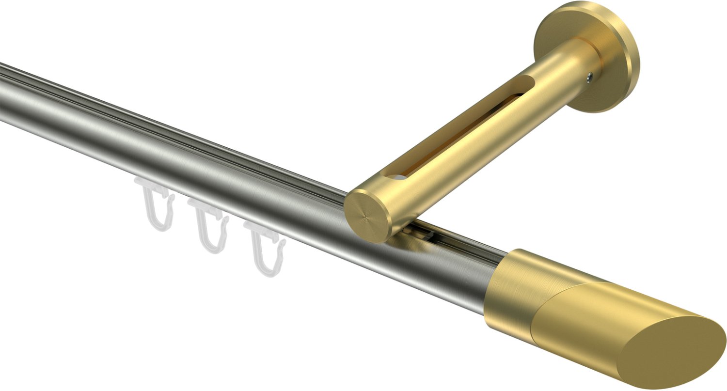 Gardinenstangen mit Innenlauf aus Edelstahl-Optik / Messing-Optik in 20 mm Ø, 1-läufig, Modell SITENO - Verano