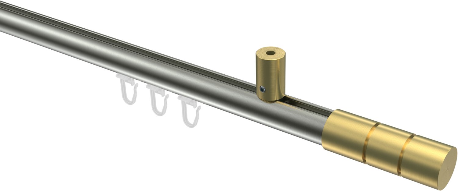 Gardinenstangen mit Innenlauf aus Edelstahl-Optik / Messing-Optik in 20 mm Ø, 1-läufig, Modell SONIUS - Elanto