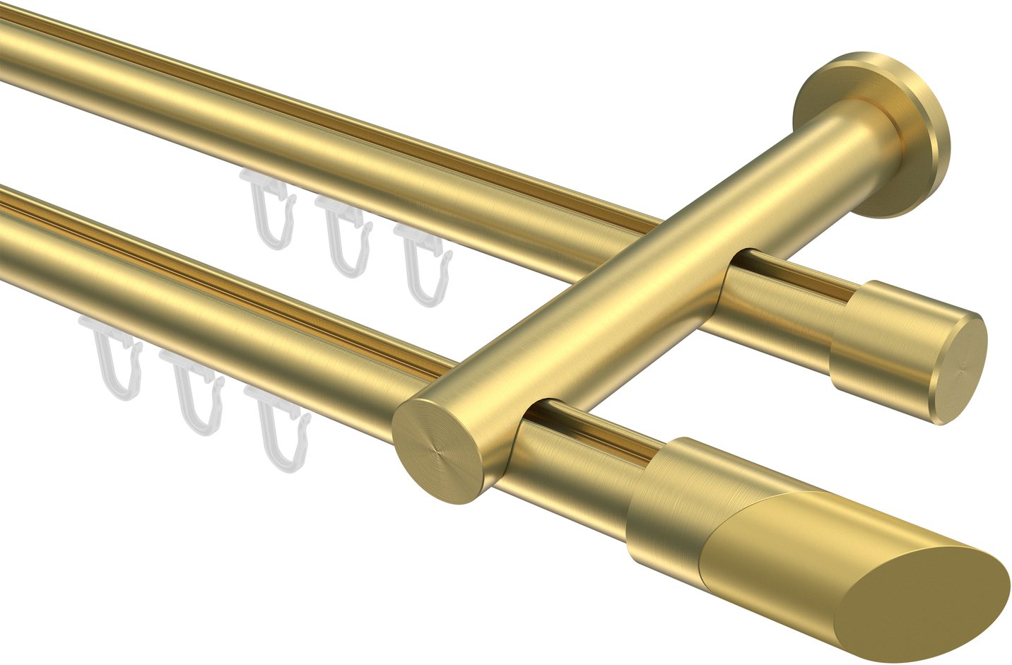 Gardinenstangen mit Innenlauf aus Messing-Optik in 20 mm Ø, 2-läufig, Modell PLATON - Verano