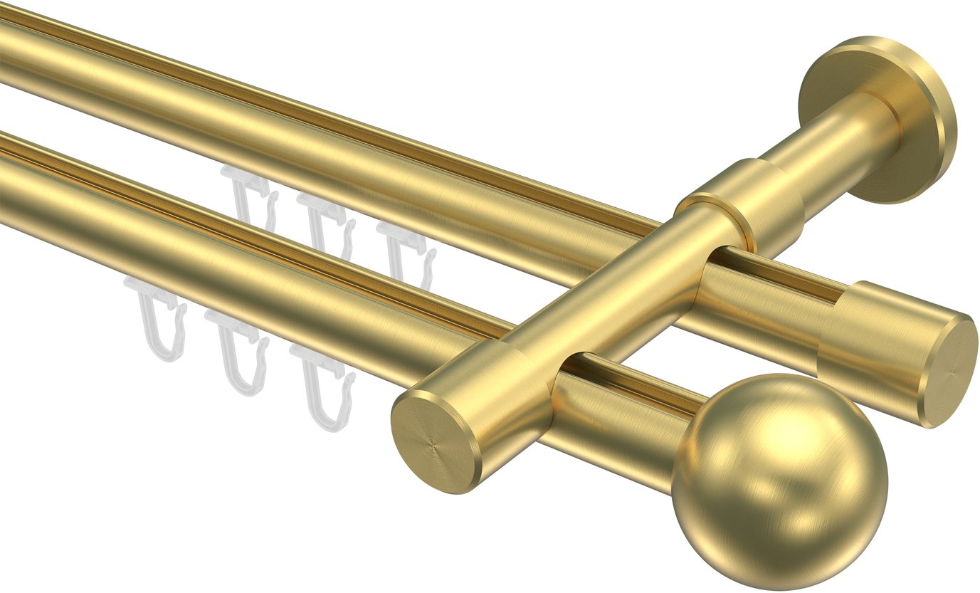 Gardinenstangen mit Innenlauf aus Messing-Optik in 20 mm Ø, 2-läufig, Modell PRESTIGE - Luino