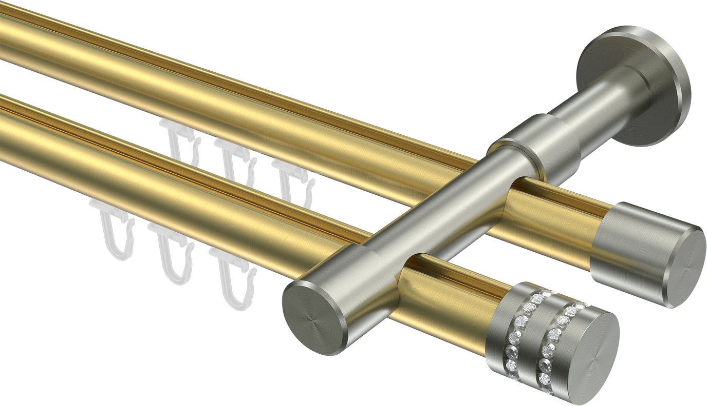 Gardinenstangen mit Innenlauf aus Messing-Optik / Edelstahl-Optik in 20 mm Ø, 2-läufig, Modell PRESTIGE - Estana