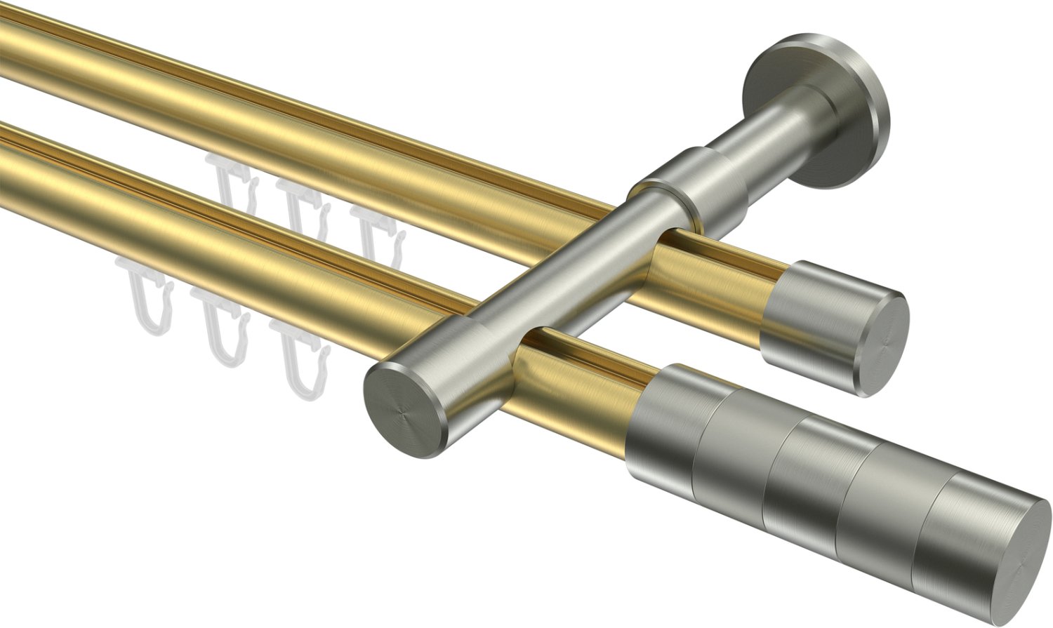 Gardinenstangen mit Innenlauf aus Messing-Optik / Edelstahl-Optik in 20 mm Ø, 2-läufig, Modell PRESTIGE - Mavell