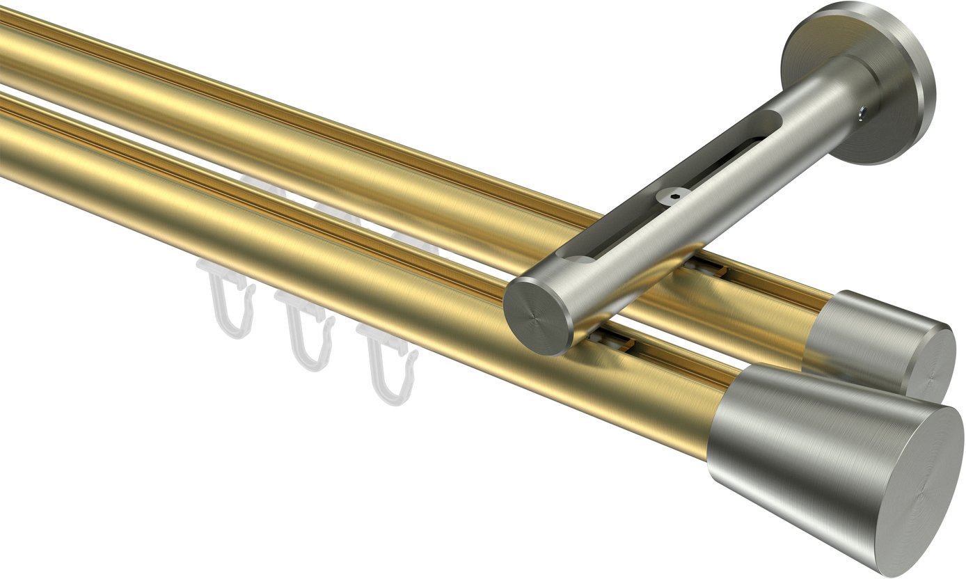 Gardinenstangen mit Innenlauf aus Messing-Optik / Edelstahl-Optik in 20 mm Ø, 2-läufig, Modell SITENO - Sitra