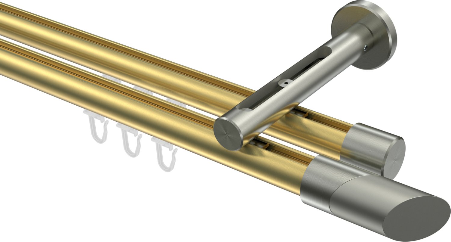 Gardinenstangen mit Innenlauf aus Messing-Optik / Edelstahl-Optik in 20 mm Ø, 2-läufig, Modell SITENO - Verano