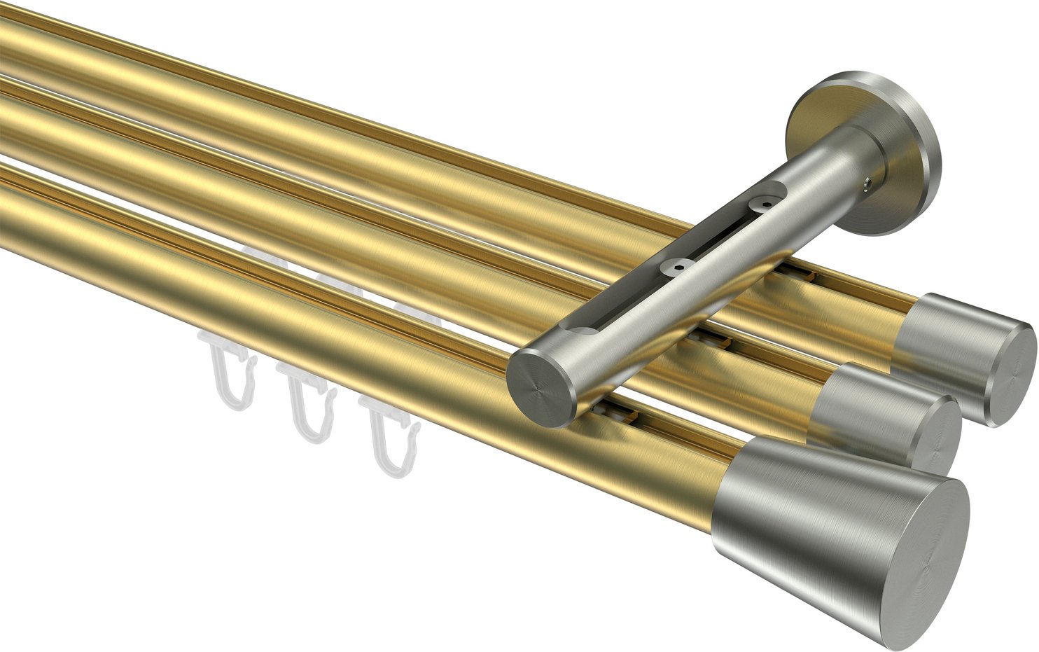 Gardinenstangen mit Innenlauf aus Messing-Optik / Edelstahl-Optik in 20 mm Ø, 3-läufig, Modell SITENO - Sitra