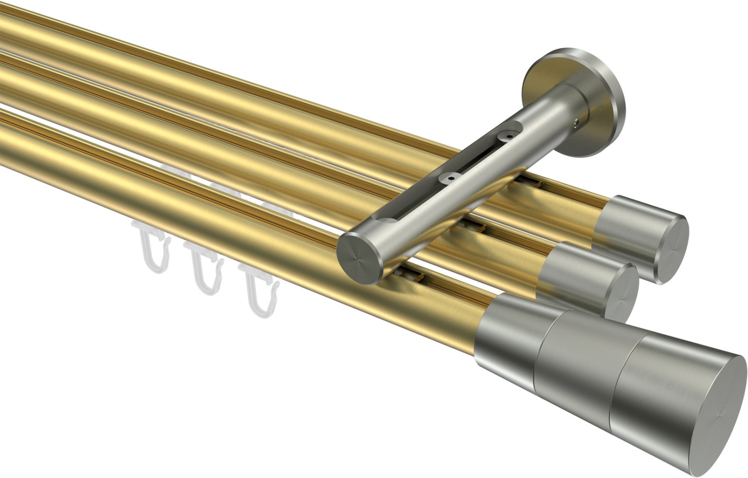 Gardinenstangen mit Innenlauf aus Messing-Optik / Edelstahl-Optik in 20 mm Ø, 3-läufig, Modell SITENO - Tanara