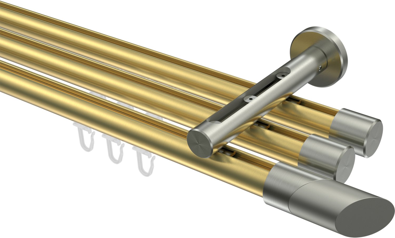 Gardinenstangen mit Innenlauf aus Messing-Optik / Edelstahl-Optik in 20 mm Ø, 3-läufig, Modell SITENO - Verano