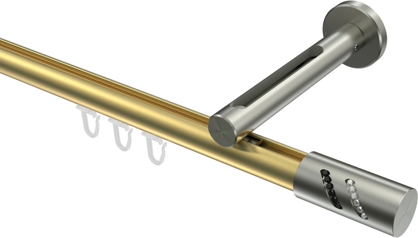 Gardinenstangen mit Innenlauf aus Messing-Optik / Edelstahl-Optik in 20 mm Ø, 1-läufig, Modell SITENO - Zoena
