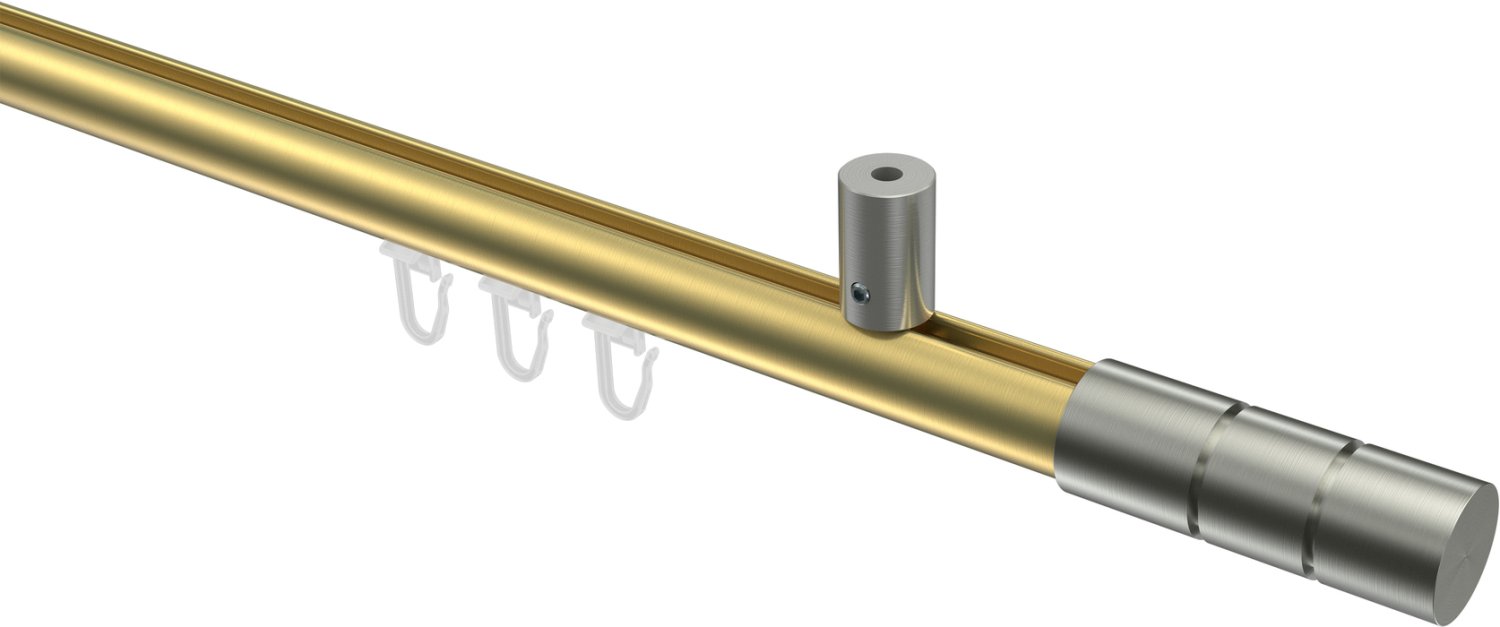 Gardinenstangen mit Innenlauf aus Messing-Optik / Edelstahl-Optik in 20 mm Ø, 1-läufig, Modell SONIUS - Elanto