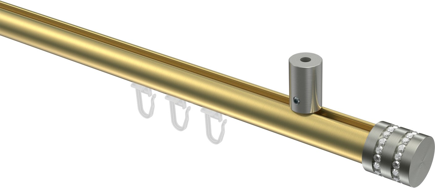Gardinenstangen mit Innenlauf aus Messing-Optik / Edelstahl-Optik in 20 mm Ø, 1-läufig, Modell SONIUS - Estana