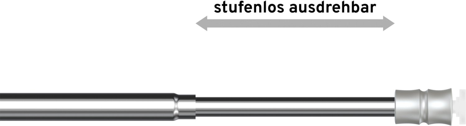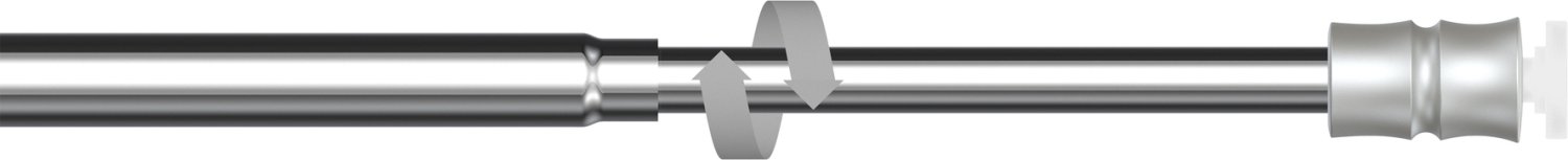 Diese Klemmstange Modell Flexo kann durch eine Drehbewegung auf die gewünschte Länge eingestellt werden. Diese ausdrehbare Klemmstange eignet sich perfekt zum Anbringen leichter Scheibengardinen bzw. Kurzgardinen direkt im Fensterfalz. Die Seitenhalterungen können sogar im leicht angeschrägten Fensterfalz montiert werden. Durch die Federspannung wird der benötigte Halt erreicht. Dieser Halt kann durch weiteres Drehen der Teleskopstangen je nach Drehrichtung verstärkt oder vermindern kann.
