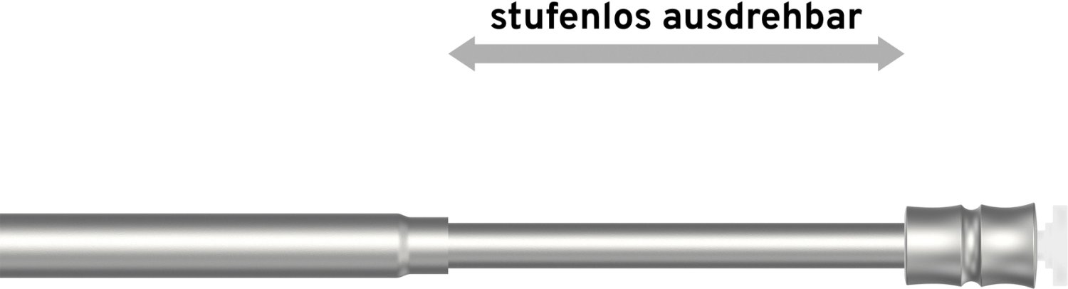 Die Klemmstangen sind im aufgeführten Toleranzbereich ausdrehbar. Aus diesem Grund sollten diese Scheibenstangen nicht über die ausgewählte Länge herausgedreht werden. Die daran anzubringenden Gardinen bzw. Scheibengardinen sollten aus leichten Stoffen bestehen, um ein Durchbiegen der Stange zu vermeiden.