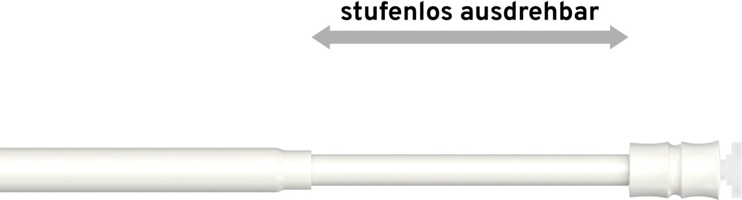 Die Klemmstangen sind im aufgeführten Toleranzbereich ausdrehbar. Aus diesem Grund sollten diese Scheibenstangen nicht über die aufgeführte Länge herausgedreht werden. Die daran anzubringenden Gardinen bzw. Scheibengardinen sollten aus leichten Stoffen bestehen, um ein Durchbiegen der Stange zu vermeiden.