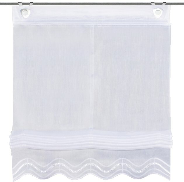 Zum Hingucker wird dieses weiße Ösenrollo durch seine Lochstickerei am unteren Rand mit Wellenabschluss. Es lässt Ihr Fenster hell wirken und mit den mitgelieferten Fensterhaken kinderleicht befestigen.