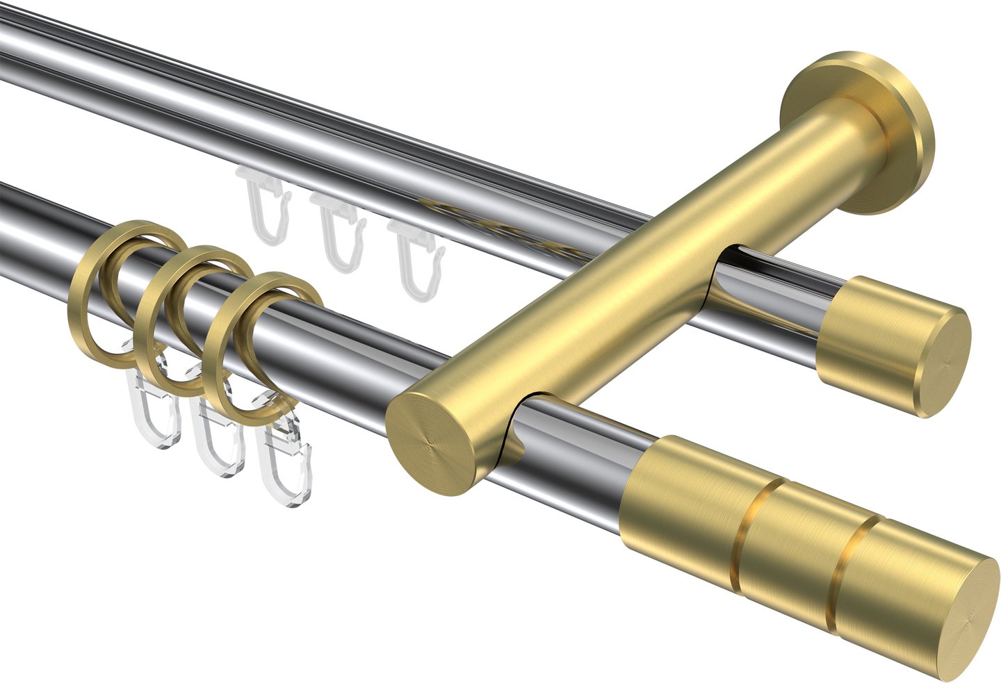 Rundrohr-Innenlauf Gardinenstangen aus Aluminium / Metall in 20 mm Ø, 2-läufig, Modell PLATON - Elanto Chrom / Messing-Optik