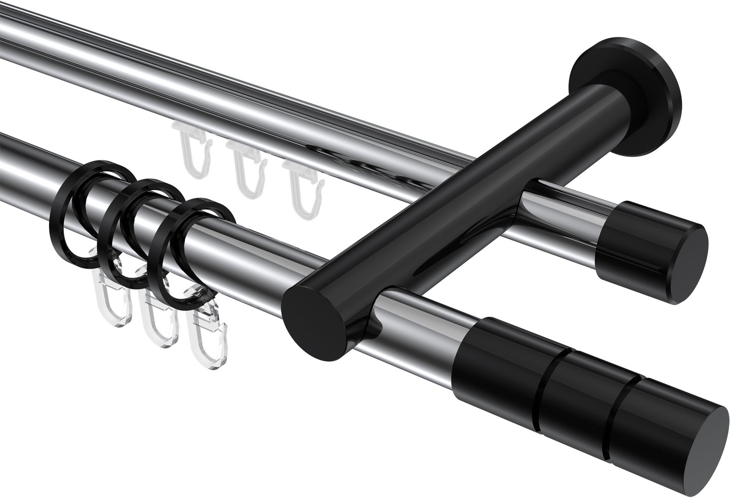 Rundrohr-Innenlauf Gardinenstangen aus Aluminium / Metall in 20 mm Ø, 2-läufig, Modell PLATON - Elanto Chrom / Schwarz