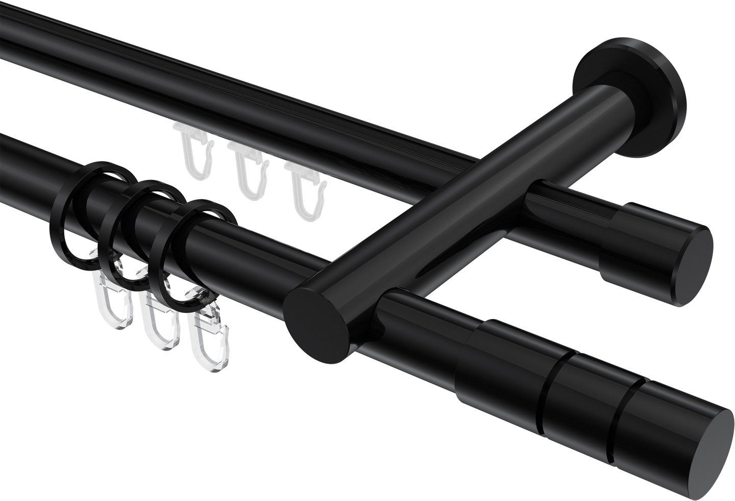 Rundrohr-Innenlauf Gardinenstangen aus Aluminium / Metall in 20 mm Ø, 2-läufig, Modell PLATON - Elanto Schwarz