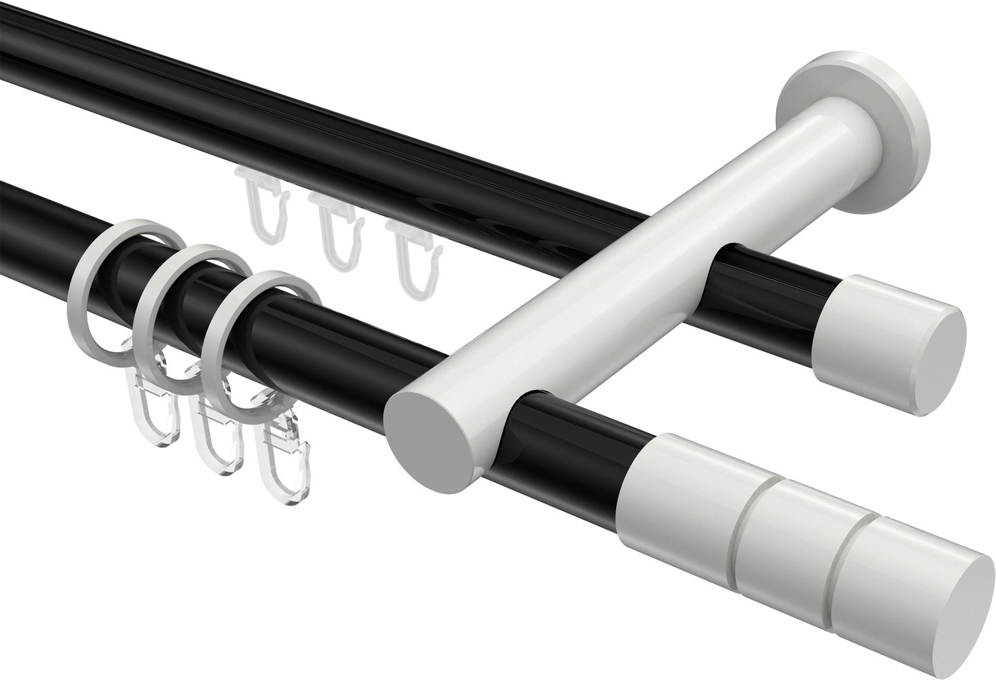 Rundrohr-Innenlauf Gardinenstangen aus Aluminium / Metall in 20 mm Ø, 2-läufig, Modell PLATON - Elanto Schwarz / Weiß