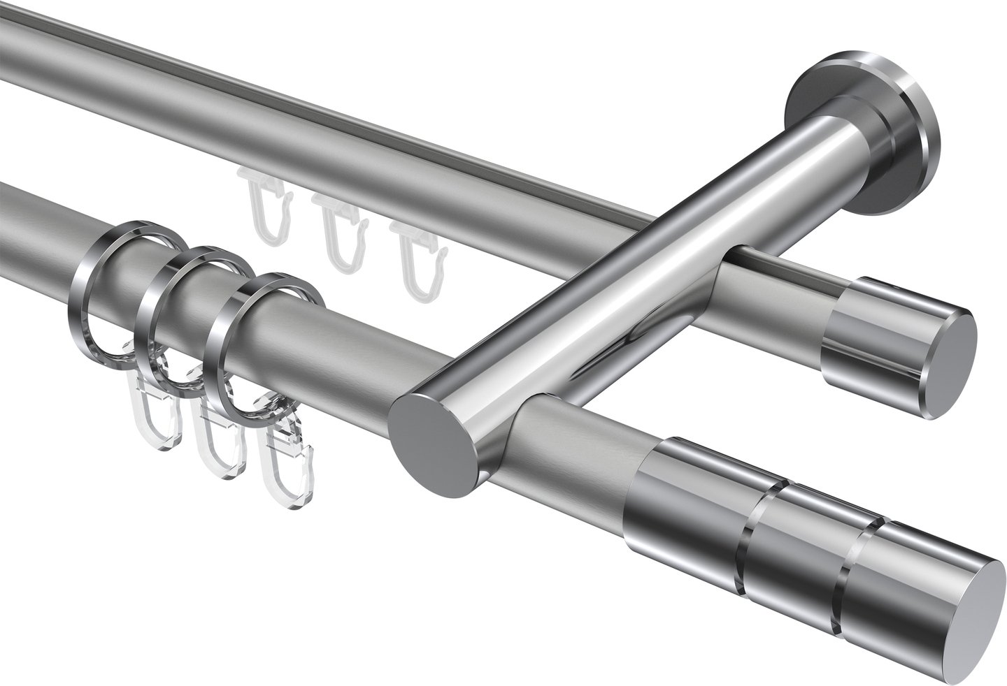 Rundrohr-Innenlauf Gardinenstangen aus Aluminium / Metall in 20 mm Ø, 2-läufig, Modell PLATON - Elanto Silbergrau / Chrom