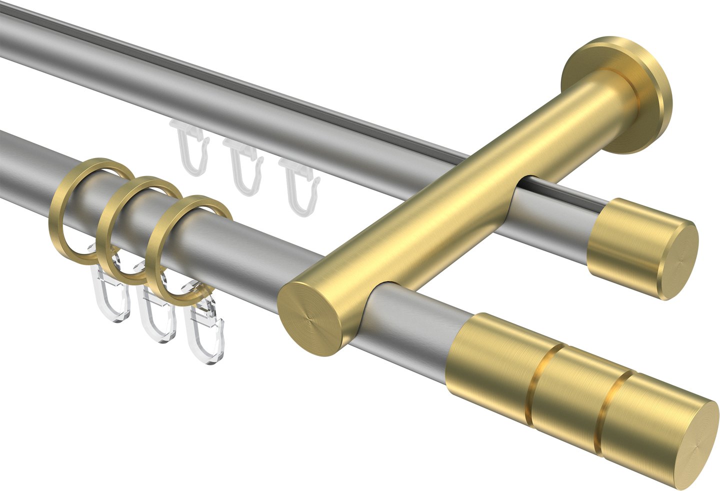 Rundrohr-Innenlauf Gardinenstangen aus Aluminium / Metall in 20 mm Ø, 2-läufig, Modell PLATON - Elanto Silbergrau / Messing-Optik