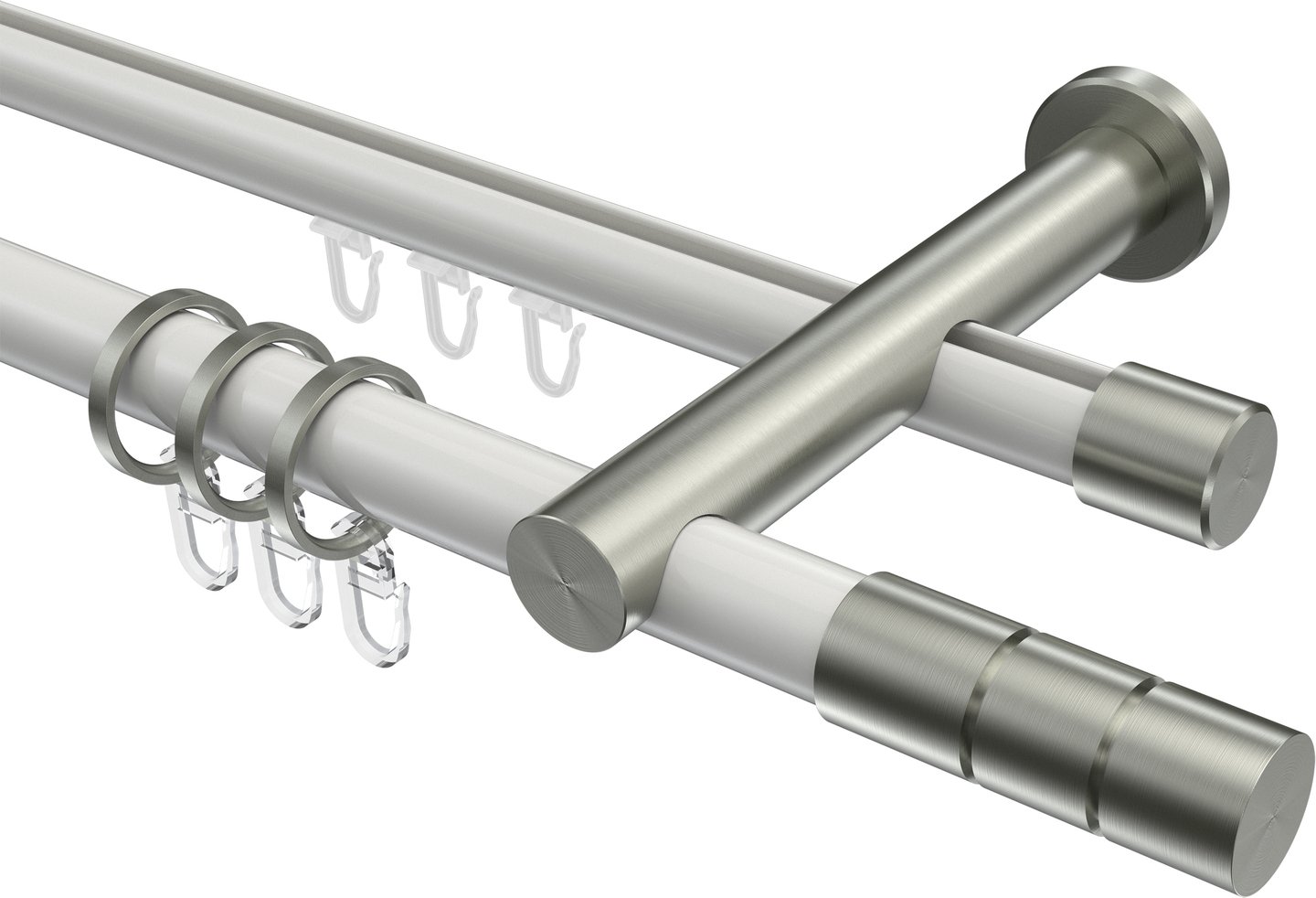 Rundrohr-Innenlauf Gardinenstangen aus Aluminium / Metall in 20 mm Ø, 2-läufig, Modell PLATON - Elanto Weiß / Edelstahl-Optik
